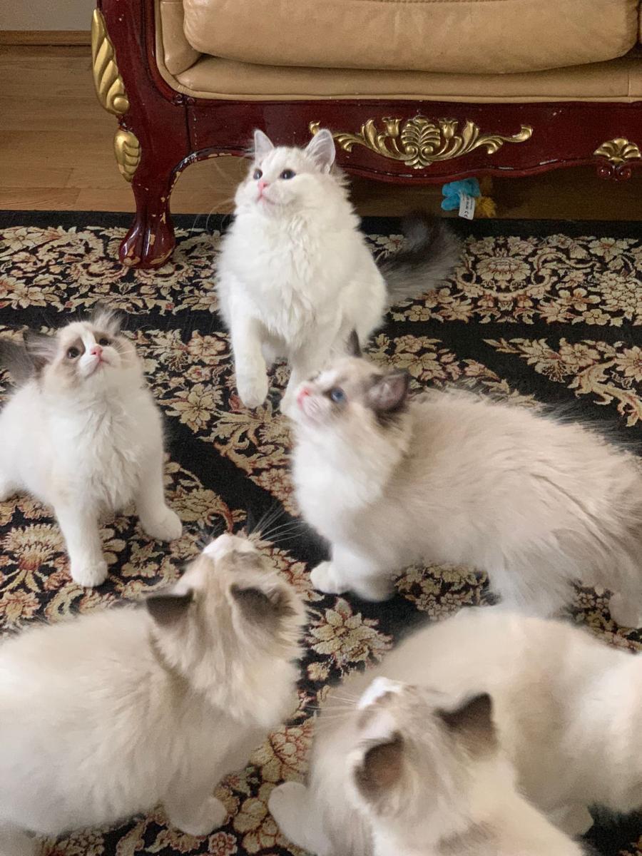 Some of our beloved kittens have found their forever homes. I breed Ragdolls in Blue, Seal, Lilac, Chocolate, and Red, with patterns including Colourpoint, Bi-Colour, Mitted, and Tabby.